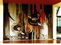 Wandteppich im Speisesaal Textilcollage "Nistplatz"
