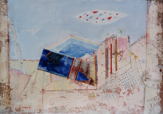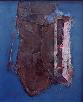 Objekt mit blauem Hintergund 2001 Acryl, Leim auf Papier 57 x 46 cm