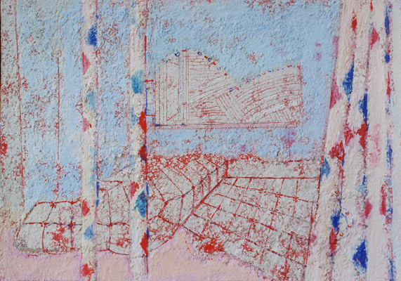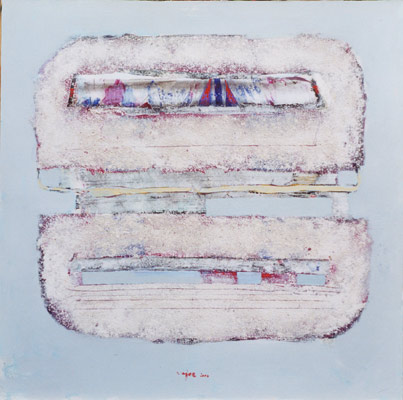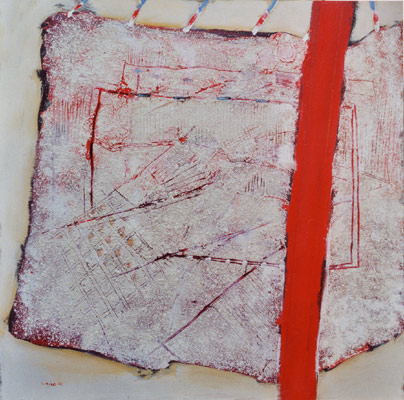 Etwas hängt in der Luft 2001 Acryl, Sand, Leim auf Holz 120 x 90 cm